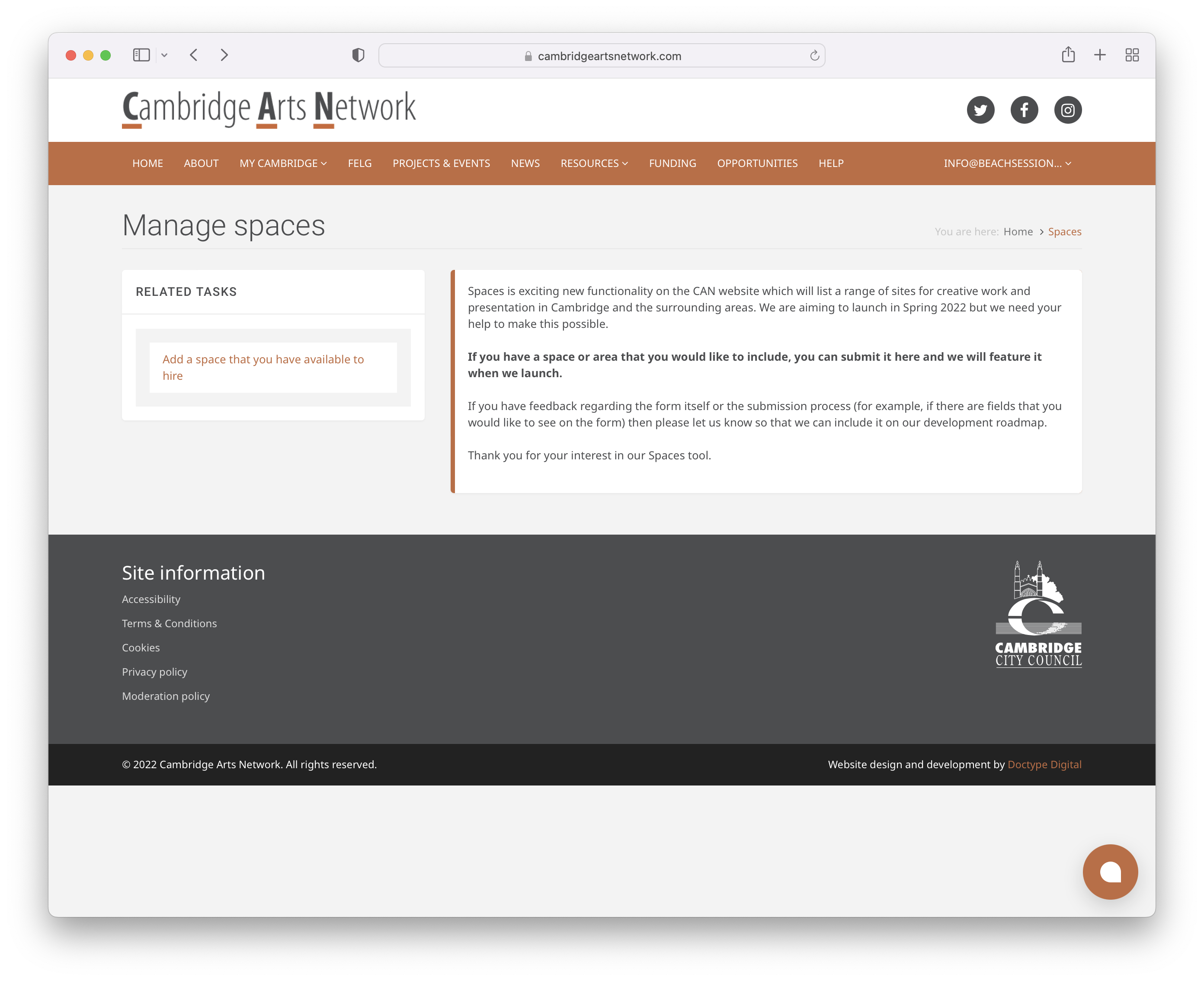 Don't forget that, as well as spaces, you can also submit articles to the site, such as an "Opportunities" or "News items".