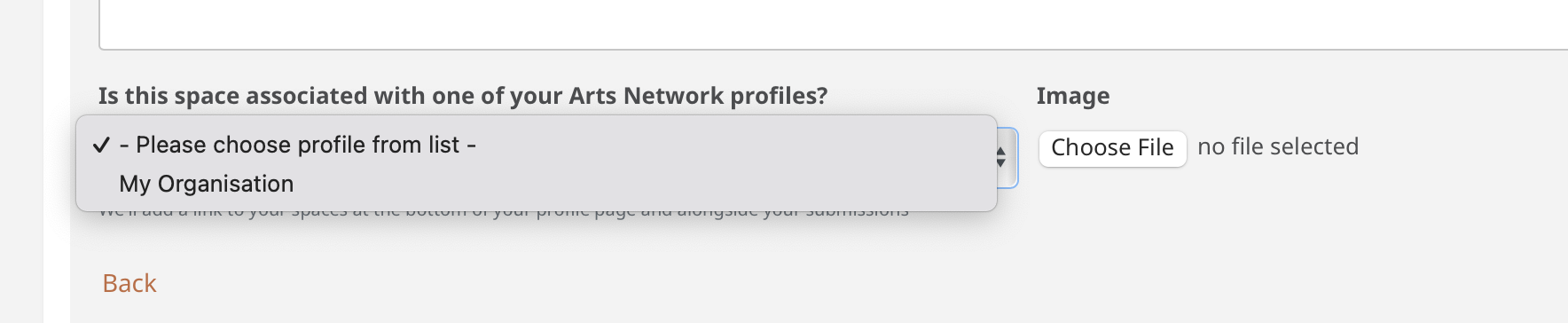 Finally, if your space is linked to an organisation that you manage on CAN, you can select the profile from the drop-down list at the bottom of the form.
