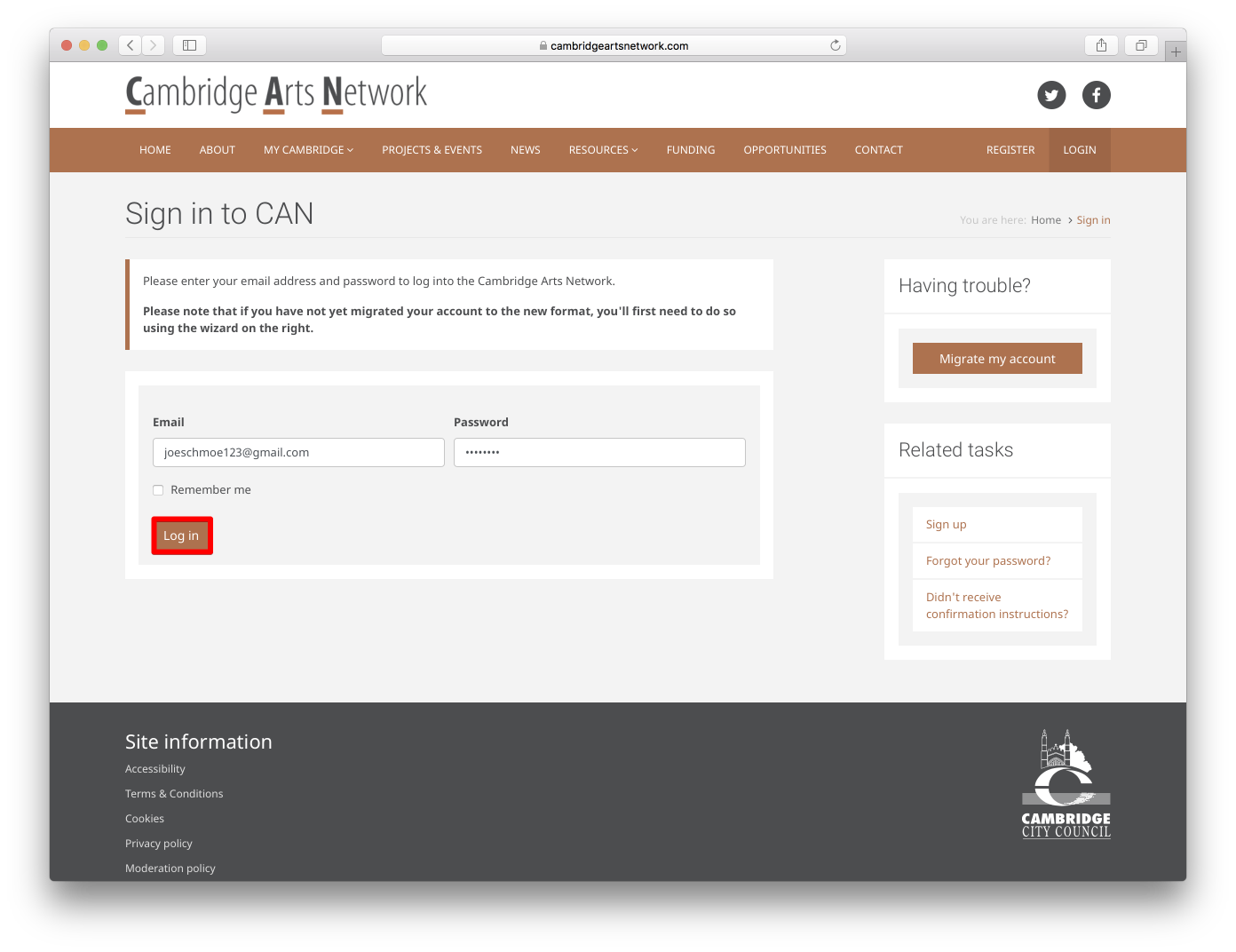 Next, enter the email address and password that you chose during the sign-up (or migration) process and click "Log in"