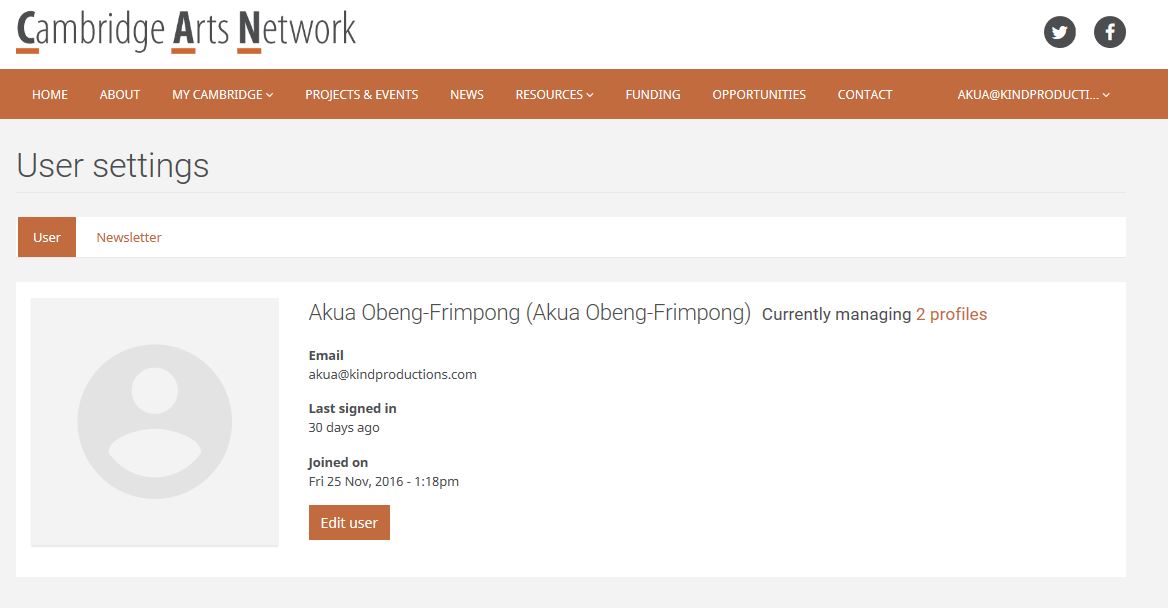 From this User Settings page, select 'Newsletter'