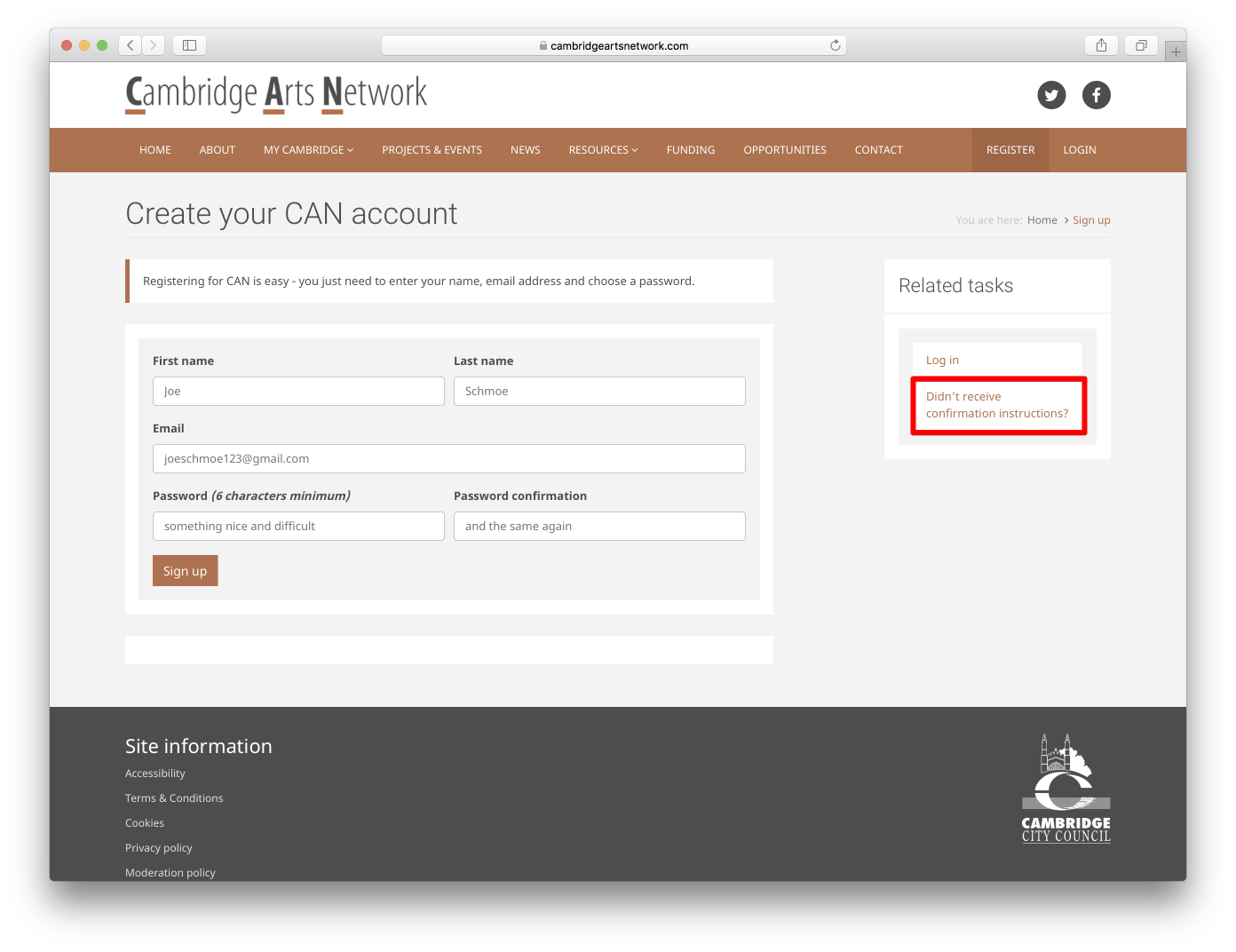 Next, click the "Didn't receive confirmation instructions?" link in the "Related tasks" navigation pane