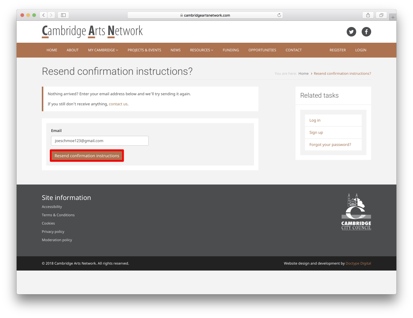 Re-enter your email address in the box provided and click the "Resend confirmation instructions" button